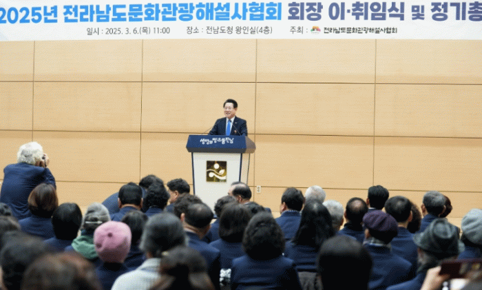 [호남미디어협의회]전라남도문화관광해설사협회는 6일 전남도청에서 회장 이·취임식 및 정기총회를 열어 전남 관광의 최일선에서 감동을 주는 해설로 ‘글로벌 관광전남’을 위해 혼신을 다하기로 다짐했다.