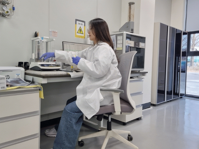 농산물안전분석센터 토양검정 담당자가 토양 유기물을 분석하고 있는 모습