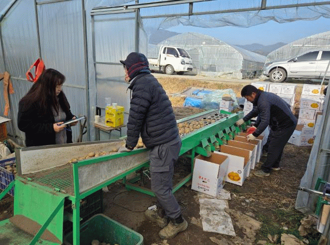 올해 통일감자 재배면적은 전체 시설하우스 면적의 1/3(5ha, 80동) 규모로 확대됐으며, 1동당(200평) 평균 수확량은 약 85박스로 품질과 수량성이 우수해 농가와 시장에서 모두 좋은 평가를 받고 있다.