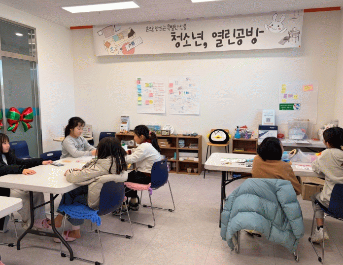 [호남미디어협의회]무안군청소년수련관은 청소년들이 정해진 프로그램 없이도 자유롭게 방문해 만들기 활동을 즐길 수 있는 공간인 ‘열린공방’을 상시 운영하고 있다.