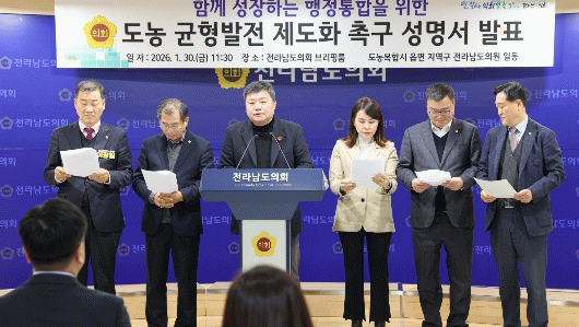 정영균 의원(더불어민주당·순천1)을 비롯한 의원들은 성명서를 통해 “도농복합시 읍·면 지역이 또다시 제도와 정책의 사각지대로 밀려난다면, 이번 행정통합은 기회가 아닌 상실이 될 것”이라며 우려를 표했다.