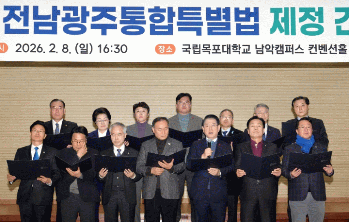 김영록 지사는 “이름만 특별법일 뿐 실질적인 특례가 거의 빠진 특별법으로 전락할 우려가 있다”며 “대통령께서 행정통합을 지방 주도 성장의 출발점이자 국가 생존 전략으로 강조하고 있음에도 중앙부처는 여전히 기득권을 지키는 데 급급하다”고 비판했다.