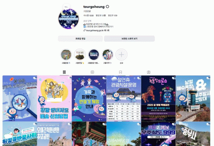 군은 공식 관광 SNS를 통해 ▲주요 관광명소 및 숨은 명소 소개 ▲계절별 축제와 지역 행사 안내 ▲현지인이 추천하는 맛집 정보 ▲관광지별 체험 프로그램 안내 ▲각종 참여형 이벤트 소식 등 고흥 관광 전반에 관한 콘텐츠를 체계적으로 게시하고 있다.