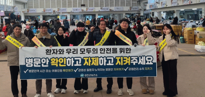 한준호 보건소장은 “이번 캠페인으로 지역 내 감염병을 예방하고 환자와 의료진의 안전한 의료원장을 조성할 것으로 기대한다”며 “손 씻기, 마스크 착용, 병문안 자제 등 기본적인 수칙을 실천하여 건강한 명절을 보내시기를 바란다”고 말했다.