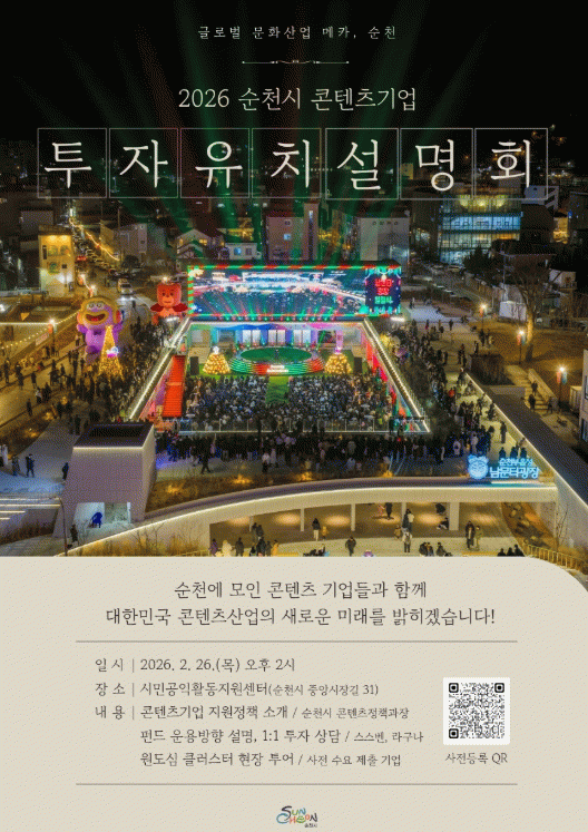 순천시, 2026 콘텐츠기업 투자유치 설명회 개최