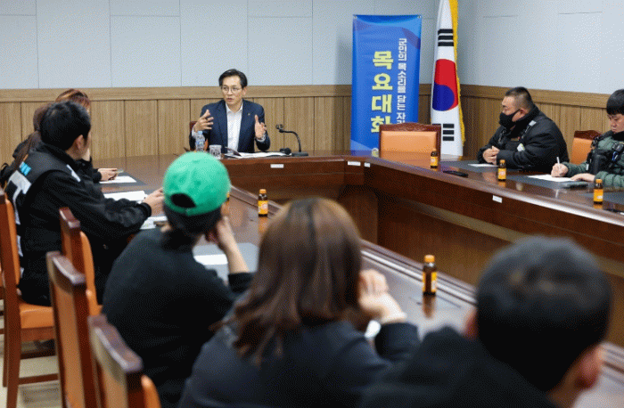 [호남미디어협의회]영암군이 20일 삼호읍행정복지센터에서 ‘소통의 창을 여는 시간, 목요 대화’를 열어 배달대행기사 등 배달업 종사자들의 애로사항을 듣고, 안정적 근무 환경 조성을 위해 다양한 이야기를 나눴다.