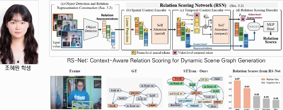 게재 논문 'RS-Net: Context-Aware Relation Scoring for Dynamic Scene Graph Generation'은 비디오 영상 속 객체 간 관계를 그래프 형태로 표현하고 추론하는 기술을 다룬 연구다.