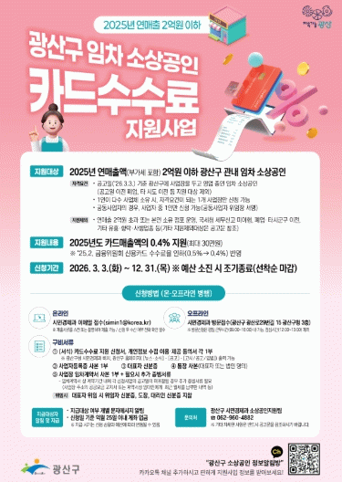 [호남미디어협의회]광주 광산구가 민생경제 회복을 위해 광산구 임차 소상공인 카드수수료 지원사업을 실시한다.