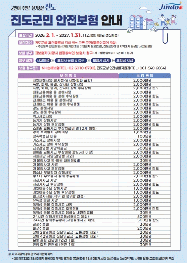 진도군, 2026년 군민안전보험 가입… 보장 항목 확대