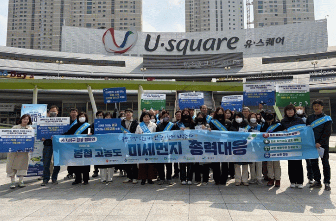 [호남미디어협의회]광주광역시는 5개 자치구와 함께 9일 서구 광주종합버스터미널 앞 광장에서 봄철 고농도 미세먼지 발생에 대응하기 위한 합동 캠페인을 벌였다.
