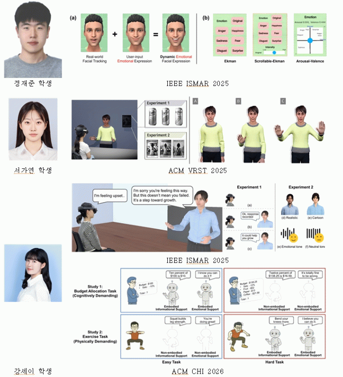 특히 IEEE ISMAR 2025, ACM VRST 2025, ACM CHI 2026 등 컴퓨터공학 분야 최상위(S급) 국제학술대회에 잇달아 채택되며 연구의 우수성과 글로벌 경쟁력을 입증했다.