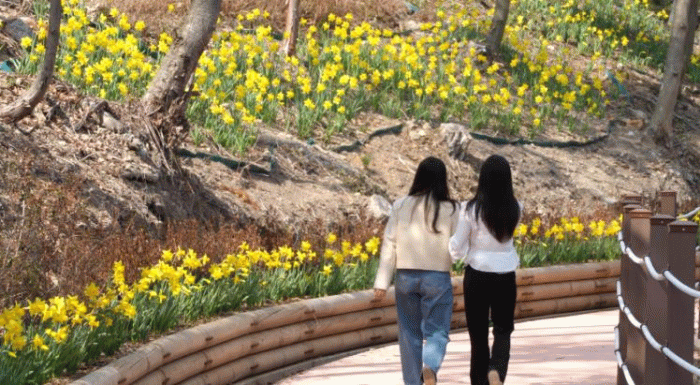 [호남미디어협의회]진도군 의신면 사천리에 있는 산림욕장에는 2022년부터 조성한 생태탐방로 부지에 수선화와 애기동백이 만개하며 봄을 알리고 있다.