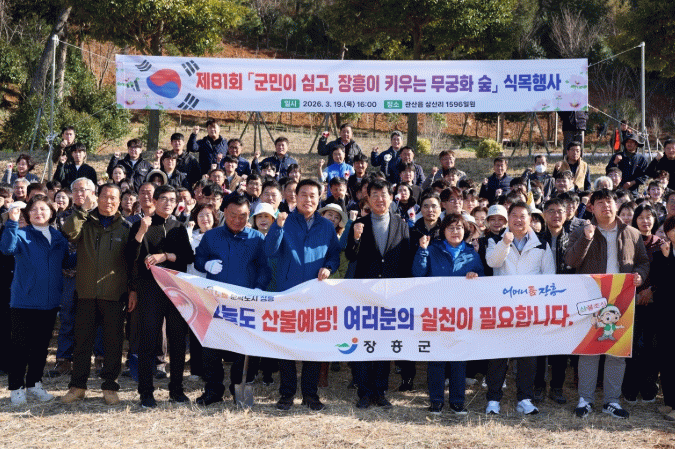 노영환 장흥군 부군수는 “이번 식목행사가 군민들이 산림의 소중함과 나라꽃 무궁화의 의미를 다시 한 번 되새기는 계기가 되길 바란다”며 “앞으로도 지속적인 나무심기와 산림 보호 활동을 통해 탄소중립 실현과 산불 예방에 최선을 다하겠다”고 밝혔다.