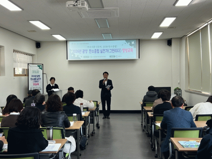 [호남미디어협의회] 광양시와 (사)전남광양기후·환경네트워크는 기후변화 대응과 탄소중립 생활 실천 문화 확산을 위한 ‘2026년 탄소중립 실천가 양성교육’을 운영한다.