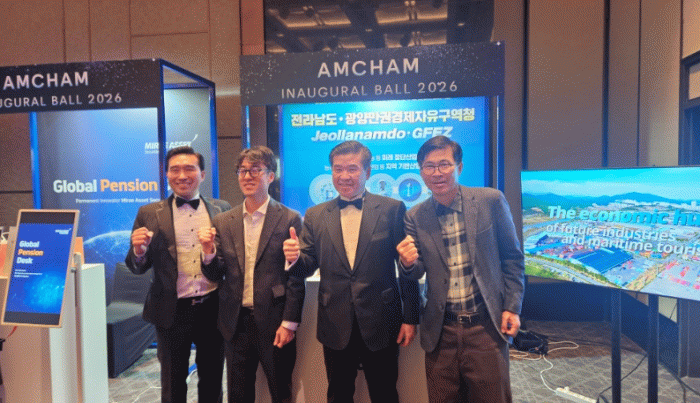 [호남미디어협의회]광양만권경제자유구역청은 전라남도와 함께 지난 20일 서울 그랜드 하얏트 호텔에서 열린 ‘주한미국상공회의소(암참, AMCHAM) 이사진 취임식(Inaugural Ball 2026)’에 참가해 미국계 글로벌 기업을 대상으로 투자유치 활동을 전개했다.
