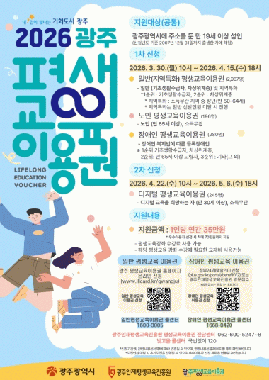[호남미디어협의회]광주광역시는 저소득층과 장애인, 노인, 디지털 소외계층의 평생학습 기회를 확대하기 위해 ‘2026년 평생교육이용권 지원사업’을 시행한다.
