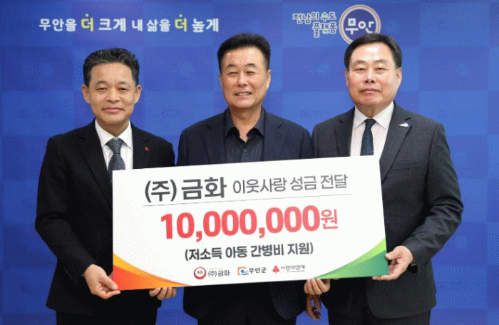 이번 기탁은 무안군 청계면에 위치한 ㈜금화가 질병 치료와 지속적인 관리가 필요한 전문가정위탁(드림스타트) 아동의 간병비 부담을 덜고 안정적인 보호 환경을 지원하기 위해 마련됐다.