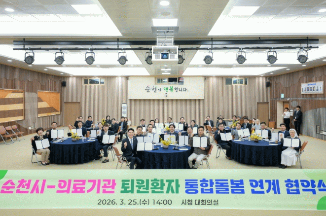 이번 협약에 따라 의료기관은 퇴원환자 중 돌봄이 필요한 대상자를 순천시에 연계하고, 순천시는 대상자에게 맞춤형 돌봄 서비스를 제공, 재입원을 예방해 지역사회 정착을 지원하게 된다.
