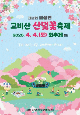 금성면 고비산 산벚꽃축제 추진위원회가 주최하고 담양군과 지역사회단체가 후원하는 이번 축제는 격년제로 열리며, 고비산의 산벚꽃을 전국에 알리고 주민 화합과 지역 경제 활성화에 힘을 보태고자 마련됐다.