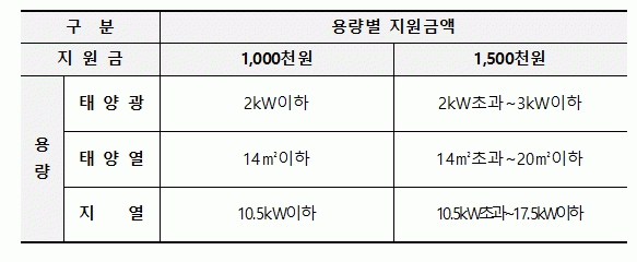 광주시 보조금은 에너지원·용량별로 차등 지원한다. 공동주택은 1동당 최대 900만원을, 단독주택은 1가구당 최대 150만원을 정부 보조금에 추가해 지원받을 수 있다.