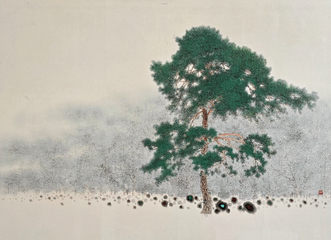 계절에 따라 변화하는 풍경을 포착해 살아 숨 쉬는 자연의 생명력을 표현하며, 고요한 화면 속에서도 장쾌한 에너지를 느끼게 한다.