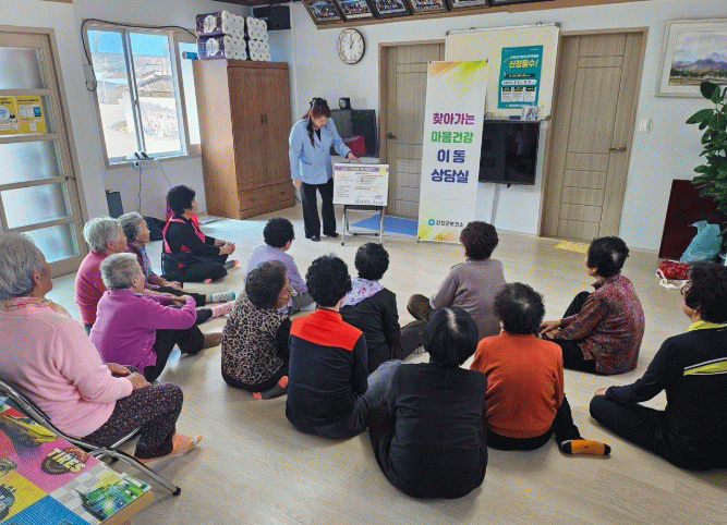 보건소에서 경로당 어르신 대상으로 우울선별검사를 실시하고 있다.
