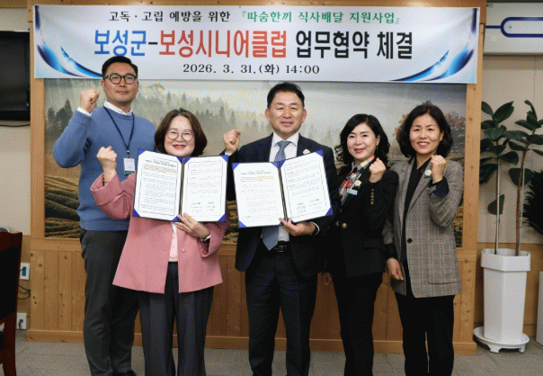 군은 지난 3월 31일에 따숨 한 끼 식사 배달 지원사업 추진을 위해 보성시니어클럽(관장 박찬숙)과 업무협약을 체결해 식사 지원과 생활 모니터링을 연계한 민관 협력체계를 구축했다.