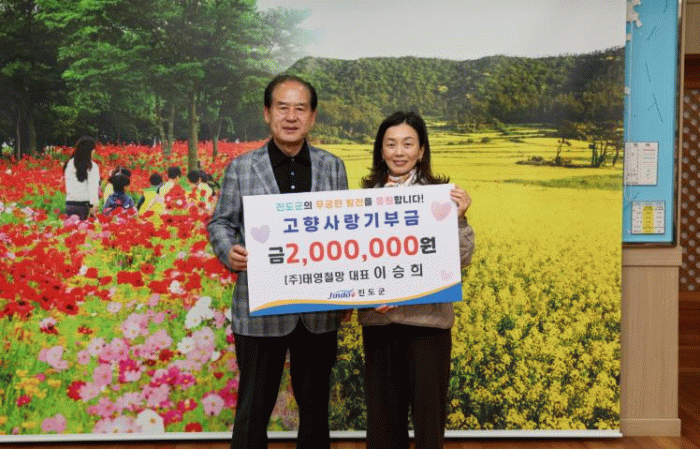 [호남미디어협의회]진도군에 소재하는 ㈜태영철망의 이승희 대표는 지난 3월 30일 진도군청을 방문해, 지역 발전과 군민의 복리 증진을 위해 고향사랑기부금 200만 원을 기부 했다.