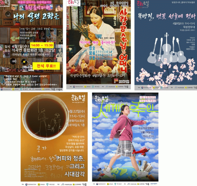 또 4월 15일과 29일에는 곡성작은영화관에서 각각 1960년대 고전영화 ‘사랑방손님과 어머니’와 독립영화 ‘세계의 주인’ 공동체상영이 진행돼 다양한 세대가 함께 공감할 수 있는 문화의 장을 마련한다.