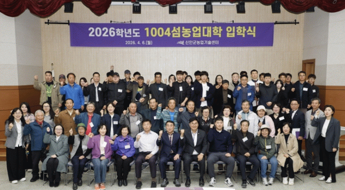 [호남미디어협의회]신안군은 4월 6일 농업기술센터 3층 대강당에서 입학생과 관계자 등 90여 명이 참석한 가운데 ‘2026학년도 1004섬농업대학 입학식’을 성황리에 개최했다고 밝혔다.