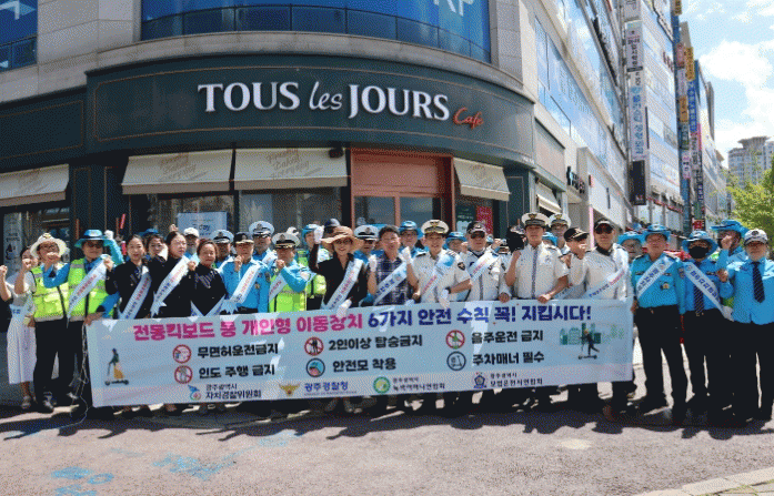 이날 캠페인은 개인형이동장치 교통사고 예방을 위해 마련됐으며, 광주자치경찰위원회와 광주경찰청, 녹색어머니회, 모범운전자회 등이 참여했다.