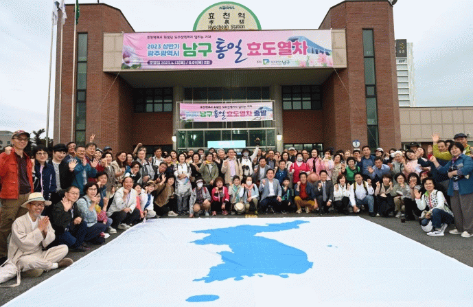 광주광역시 남구 “통일열차 곧 출발, 표 구매하세요”
