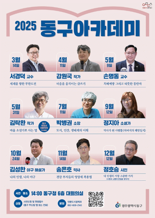 [호남미디어협의회]광주 동구는 ‘2025년 동구 아카데미’가 오는 14일 서경덕 성신여자대학교 교수의 강연을 시작으로 올해 첫 출발을 알린다고 밝혔다.