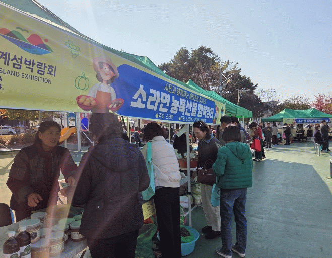 장터에서는 소라면 농민들이 정성껏 재배한 고구마, 배추, 무, 생강, 고막 등 60여 개 품목이 10~20% 할인된 가격에 판매됐으며 지난해 2,500만 원보다 증가한 3,200만 원의 판매고를 기록했다.