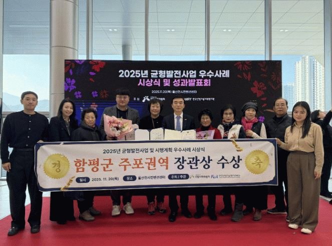 [호남미디어협의회]전남 함평군이 2025년 균형발전사업 우수사례 시상식’에서 3년 연속 우수사례 주민주도형 지역 발전 역량을 전국에 알렸다.