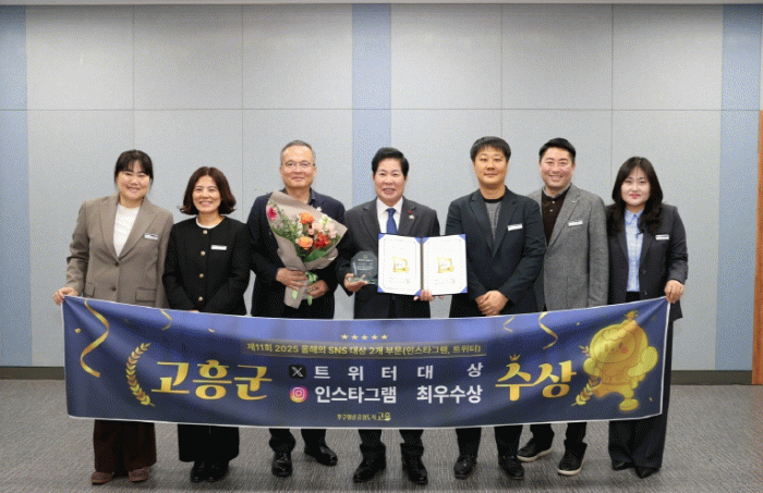 [호남미디어협의회]고흥군(군수 공영민)은 지난 11월 26일 서울 한국프레스센터 국제회의장에서 열린 ‘제11회 2025 올해의 SNS 대상’ 시상식에서 트위터 부문 대상과 인스타그램 부문 최우수상을 수상했다고 밝혔다.