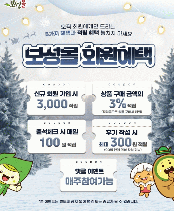 . 명절 시즌 최대 20% 할인 행사를 비롯해 ▲신규 회원 가입 시 3,000포인트 지급, ▲구매 금액의 3% 적립, ▲출석 체크 포인트 지급, ▲후기 작성 포인트 지급 등 고객 친화적인 혜택과 이벤트를 통해 충성 고객층을 확보하고 있다.