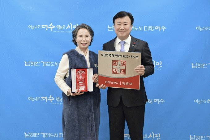 시 관계자는 “한과를 만드는 정성 어린 시간과 노력을 통해 전통의 맛을 재현하고 계승·발전시켜 오신 박윤덕 대표님의 대한명인 선정을 진심으로 축하드린다”며, “앞으로도 여수의 대표 전통 식문화 브랜드로 더욱 우뚝 설 수 있도록 함께 노력하겠다”고 전했다.