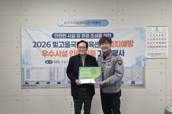 [호남미디어협의회]광주시광산구시설관리공단에서 운영하는 빛고을국민체육센터와 광주광산경찰서가 범죄예방 우수시설 인증패 전달식을 가졌다고 11일 밝혔다.