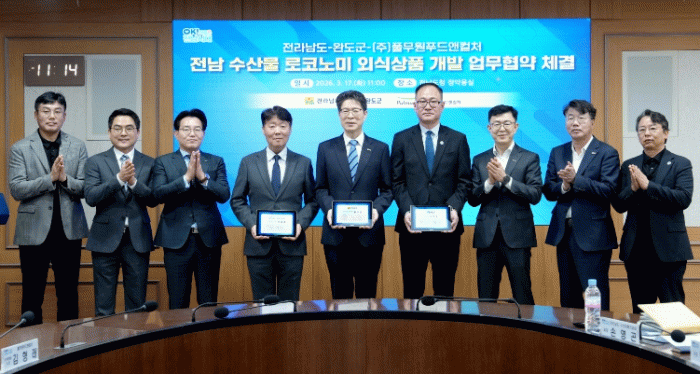 협약식에는 황기연 전남도지사 권한대행, 이범우 완도부군수, 김경순 ㈜풀무원푸드앤컬처 부사장이 참석해 상호 협력의지를 확인했다.